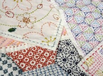 刺し子の手縫い作品で藍染、草木染、使用。