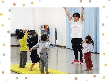 鉄棒、跳び箱、マット、トランポリンなどを使い、楽しみながら一つ一つを達成していくことで、健やかなココロとカラダを育てます。