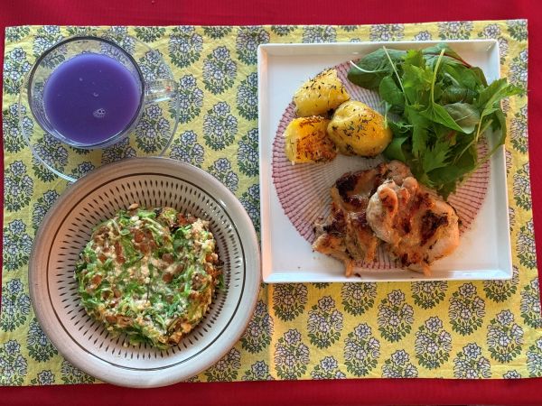 【メニュー】 ・塩麹とハーブのチキンソテー・塩麹ハーブのポテト添え