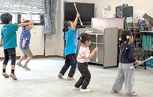音楽に合わせてリズム感や、体のしなやかさ、柔軟性を身につけます。
