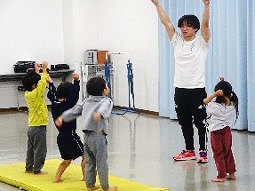 マット運動やボール投げなど楽しみながら、体の使い方(基礎運動)をしっかり学び、体力、集中力を育みます。